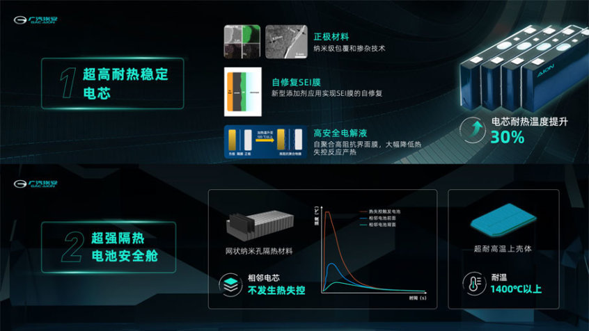 在电池包内部结构方面,新的技术争取做到“大事化小,小事化了”。电芯的电解液更加安全,不易出现热失控;电芯之间会有更多的隔热材料,起到热源阻隔的作用,防止单个电芯出问题引发的连锁发应;热管理系统主动运行,BMS会24小时监控电池,若发现异常,系统会立刻启动冷却系统为电池降温;电池包内部的空间排布也得到了优化,设计出热失控后火流路径,通过分流、导流等手段把火源快速引导到灭火通道后安全排出。广汽埃安的“弹匣电池”和长城的“大禹电池”基本上都是这种思路。