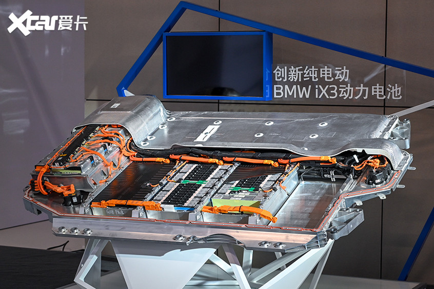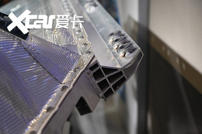 宝马iX3的电池包采用了大量安全冗余设计,电池托盘采用了高强度锻造铝合金材料,在其侧边有完善的缓冲吸能结构(下图左)。电池模组与电池包边缘之间还有相当一段距离,为碰撞等极端情况预留出了充足的缓冲空间;电池模组之间被粗壮的铝合金横梁隔开,进一步增加了强度(下图右)。这样的设计也意味着更高的成本和重量。