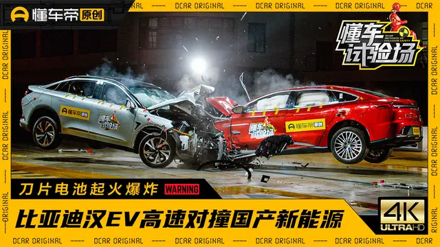 事情大概是这样,懂车帝拉了辆价位差不多的比亚迪汉 EV 和极狐阿尔法 S 做高速对撞试验,结果汉 EV 被撞的稀烂,隔那放了两天后还自燃了。