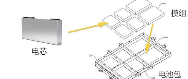 电池本体组装成为电池模组,电池模组再成批打包形成电池包( Pack )装到车上。