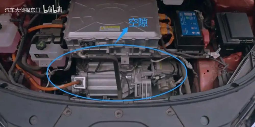 除了蓄电池,汉 EV 的设计制造平台并不是为纯电动车打造的,所以可能某些为纯电动汽车的安全性设计并没有考虑周全,比如上面图中放油车发动机的地方出现了大面积空隙。