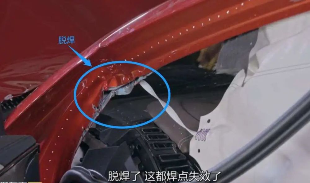 当然还有视频中提到的焊点脱焊问题,这也是导致汉 EV 驾驶座、 A 柱、 B 柱几乎完全变形的原因之一。