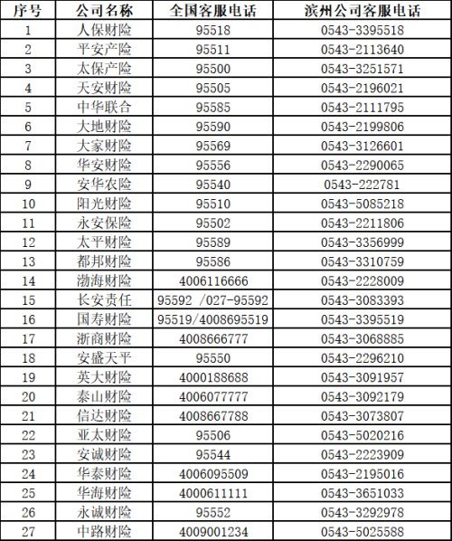 附:我市财产险公司的报案电话