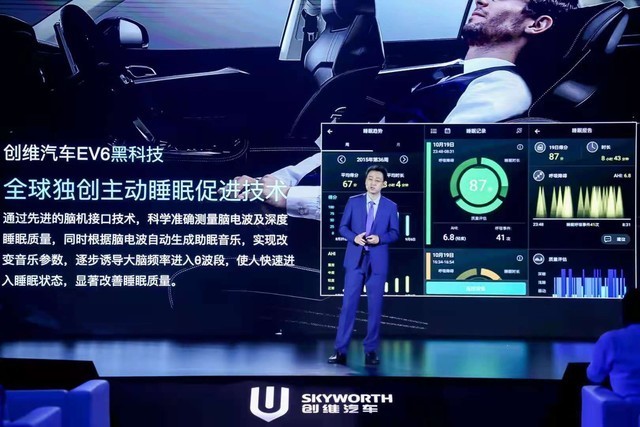 开沃集团常务副总裁董钊志驾驶着6座合家版隆重登上舞台,随即对此次上市的创维汽车EV6的产品亮点逐一介绍。他在发布会上表示:“创维汽车聚焦改善人们亚健康状态,开发出独有的主动睡眠促进技术,同时也从未停止对新能源汽车前沿技术的研发和探索”。除了让用户在车内享受舒适的深度睡眠外,创维汽车EV6还被定义为超级智能移动空间,更可以为用户提供全方位的数智化健康管理。