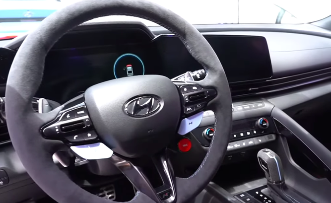 内饰方面,全新的现代伊兰特N与普通版有着明显的不同,亮眼的大红色点火器,还有赛车味道十足的大拨片,连座椅都换成了赛车版本,支撑感与包裹感得到提升,还有代表着不同身份的字母N也出现在头枕上。