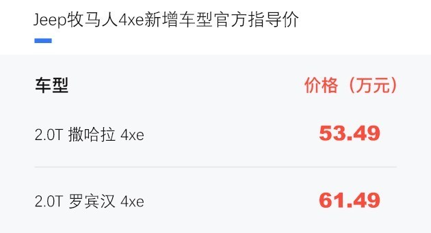 易车讯7月28日,Jeep牧马人4xe新增车型正式上市,此次共推出两款车型,售价区间53.49-61.49万元。Jeep曾在5月推出了牧马人4xe先行版车型,相比于先行版车型,新车的售价有所提高,且配置也有所提升。