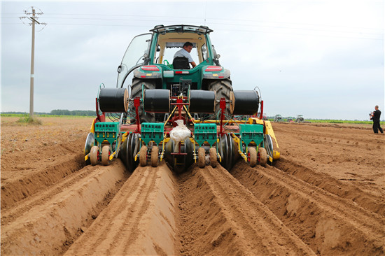 在大荔县赵渡镇的千亩红萝卜基地,荔盛红萝卜专业合作社引进的新型北斗导航自动辅助驾驶系统,实现了红萝卜播种机无人驾驶实现开沟、垒垄、播种、覆土、埋设滴管、镇压同步完成的精准作业,每天每台车种植红萝卜近百亩,效益提高了10多倍。