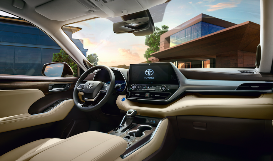 内饰方面,汉兰达采用了全新的设计语言,中控区域设计更为年轻时尚,中控区域采用了大面积的皮质材料包覆,12.3英寸中控屏与下方空调按钮集成,使中控屏看起来更大,导航、音乐、语音识别等功能也有配备,同时还搭载了Toyota Safety Sense 智行安全系统。