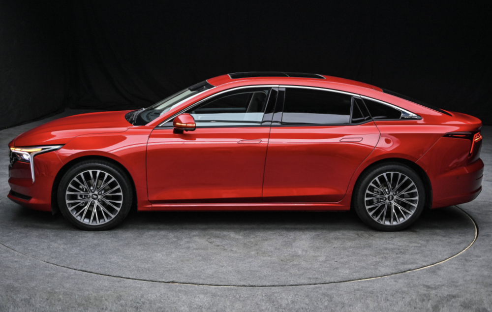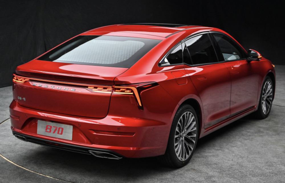 侧面线条流畅,溜背式的造型充满了运动感,不因循守旧,应该就是奔腾B70的设计风格。新车的长宽高分别为4810/1840/1455mm,轴距为2800mm,已经达到了标准的B级车水平,整体的空间表现也相当不错。