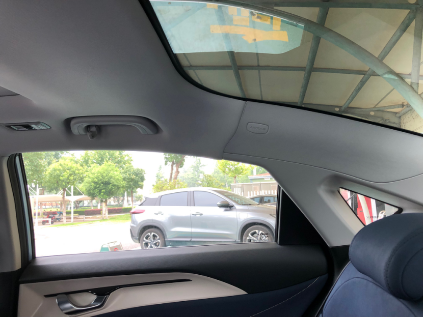 还有全车环视影像、透明底盘、氛围灯,无线充电,全景天幕等等配置,特别是后排乘客抬头就是延伸到头顶的大曲率后挡风玻璃,这处设计我颇为心水,视野和高级感拉满。