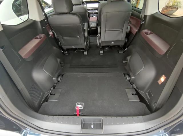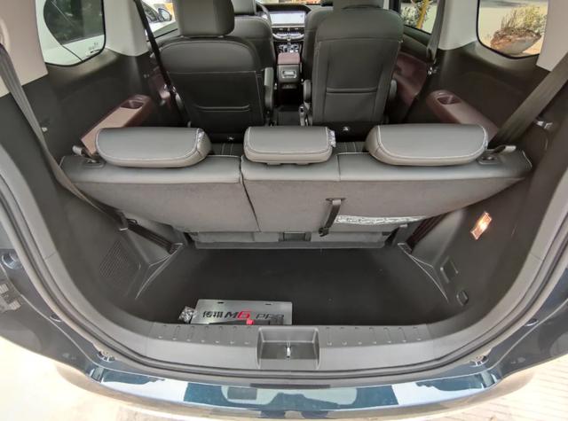它采用了奥德赛的下沉式的后备箱设计,也即负一层的设计。所以,它的纵向空间虽然不是很大,但是它用高度进行了弥补,再加上座椅下方还有一些掏空了的空间,如此一来,在正常7座状态下,M6还是非常能装的。