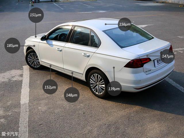 测试结果显示,全新宝来漆面最薄部分为后翼子板,厚度为139μm,前翼子板漆面厚度最厚为185μm,该车的漆面厚度平均值为154μm,综合来看全新宝来车身漆面品质表现符合该级别水平。