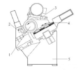 1.铣刀盘 2.凸轮轴转动方向 3.铣销单元 4.铣销单元移动方向 5.床身