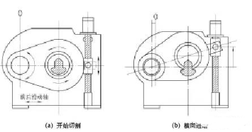 (3)Boehringer公司内铣。Boehringer公司内铣刀盘装在一个偏心体上,铣刀盘由主轴驱动,小轴承支撑实现主运动,偏心体由特殊的带有齿形的大偏心轴承支撑,由旋转进给机构驱动,与连杆颈同心后再铣削加工。