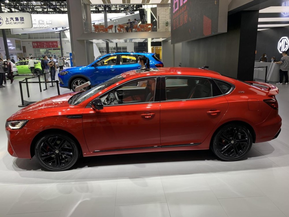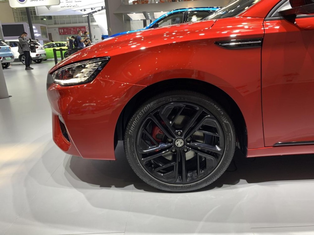 名爵6的长宽高分别为4704/1840/1466mm,轴距为2715mm,从车身侧面看,车辆的车头部分呈现出一种俯冲的姿态,线条非常的富有张力,有着红色卡钳的18英寸冰刃轮毂,有着一种即将战斗的感觉。