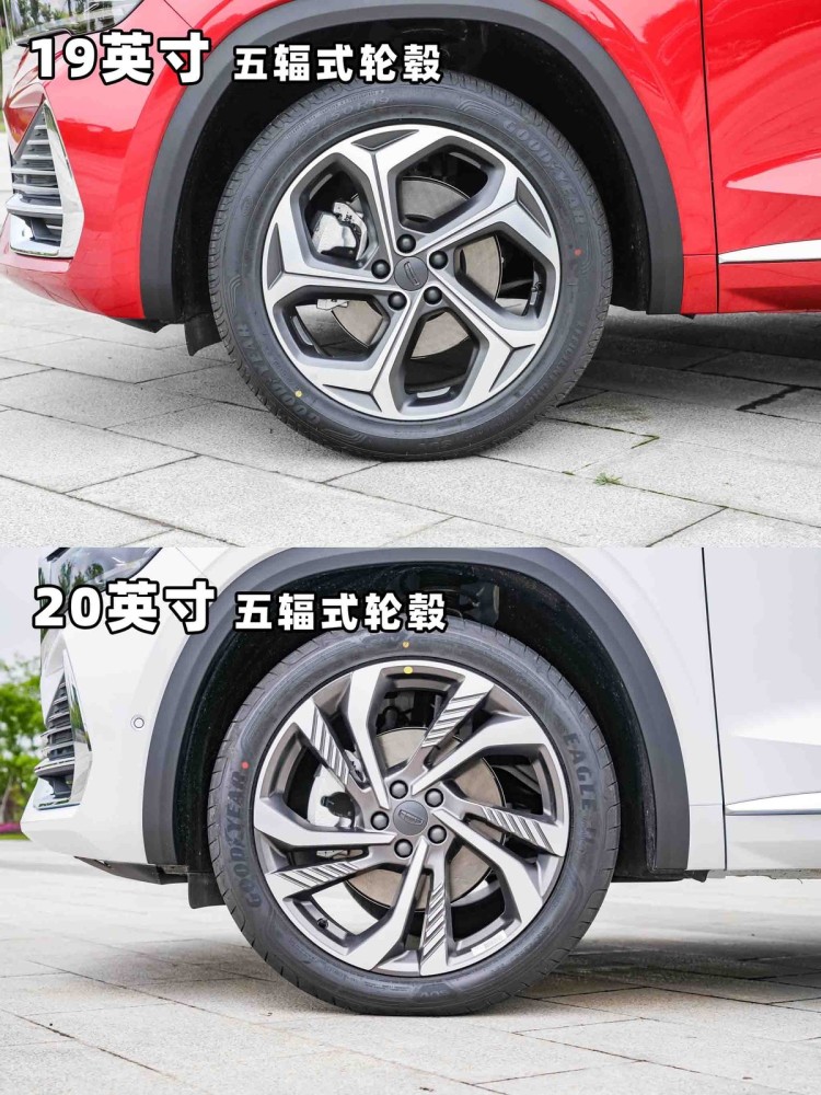 星越L采用了2种造型的五辐式轮毂,其中舒适型、豪华型的轮毂尺寸为18英寸。尊贵型为19英寸,旗舰型则为20英寸。轮胎上星越L全系采用的是,固特异品牌的EFFICIENT GRIP系列轮胎,以及EAGLE F1系列轮胎。其中舒适型、豪华型的轮胎规格为235/55 R18,尊贵型为235/50 R19,旗舰型则为245/45 R20。