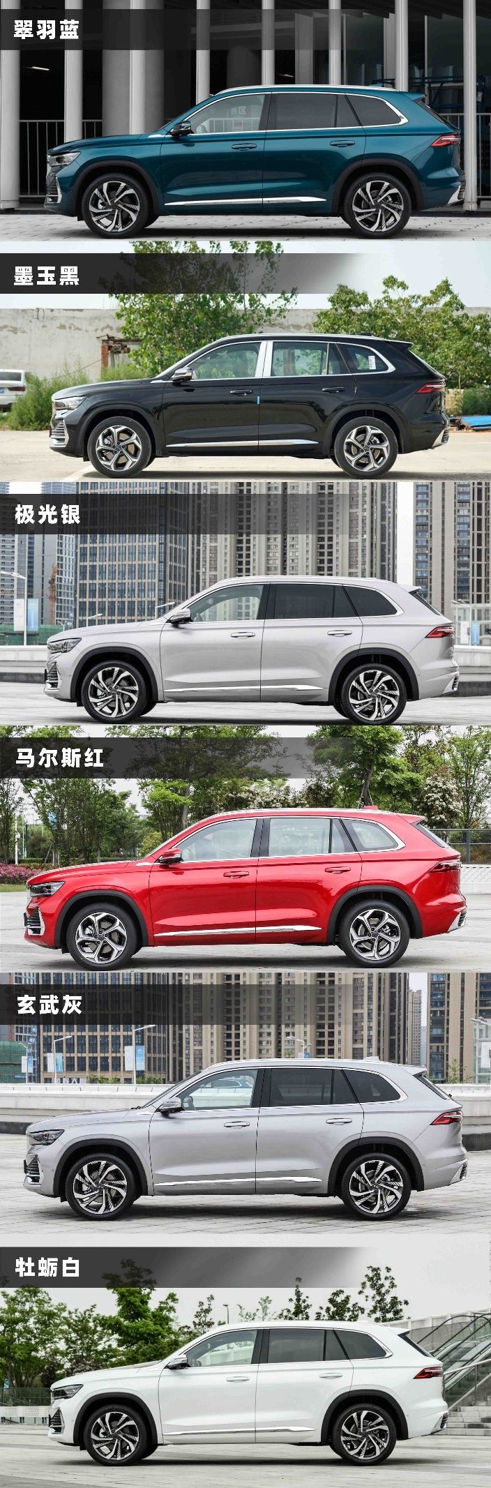 星越L为其车身配色提供了6种方案,分别是翠羽蓝、墨玉黑、极光银、马尔斯红、玄武灰,以及牡蛎白。
