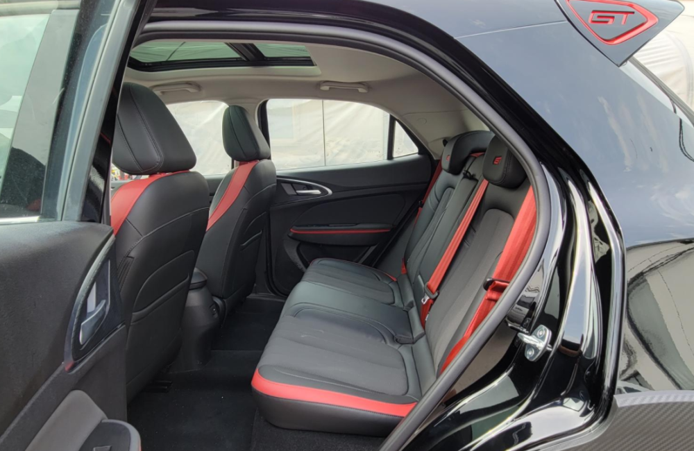 尾部大尺寸扰流板,侧面标有“GT”字样,凸显了新车身份,尾灯则使用了隐藏式尾灯设计,提升了整体感。后包围红黑撞色的尾部扩散器,也提升了整车的运动属性。