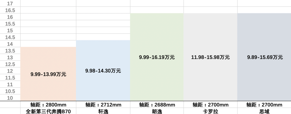 虽然全新第三代奔腾B70对标合资紧凑级车,但是自身级别却一点也不紧凑。一般来说,合资紧凑级家轿的车身长度一般控制在4200-4600mm之间,将轴距控制在2400-2700mm之间,基本只配备1.6L或1.2T-1.5T的发动机。这已经是业内公认的“潜规则”,但全新第三代奔腾B70作为一款“新国民家轿”选择了“不认可”,它打破了紧凑级家轿固有的惯性规则,提供2800mm同级最长轴距,全面超越市场同级产品,突破了家轿空间上限,在硬刚合资A级轿车的过程中,重新定义了A级轿车最大空间标准。