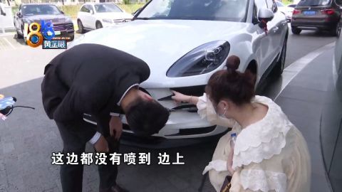6月21号,嘉兴的顾女士买了一辆保时捷,之后到汽车美容店贴车衣。顾女士说,店里的人发现,前保喷漆存在问题。