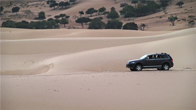 就这样,靠着途锐的“鞭策”,第四天我们终于穿越出了翁牛特。虽然时有状况发生,但在摸清车的脾气、人车之间建立足够的默契之后,途锐能完完整整地跟下整个行程,这点让包括我在内的所有人都大感意外。还有一点令我印象深刻,那次因为担心发动机过热,我们在沙漠里全程都关着空调,打开车窗,最后从翁牛特一出来,所有人都是灰头土脸的,车里到处是沙子。再看途锐,全程开着空调,那叫一个爽啊,车里面半粒沙子都没有。回去的路上,白加黑带着心爱的姑娘在落日的余晖中绝尘而去,把在公路上慢慢“噶呦”的我们甩得老远老远,最后竟然比我们早3个多小时到的家,你说得有多气人?
