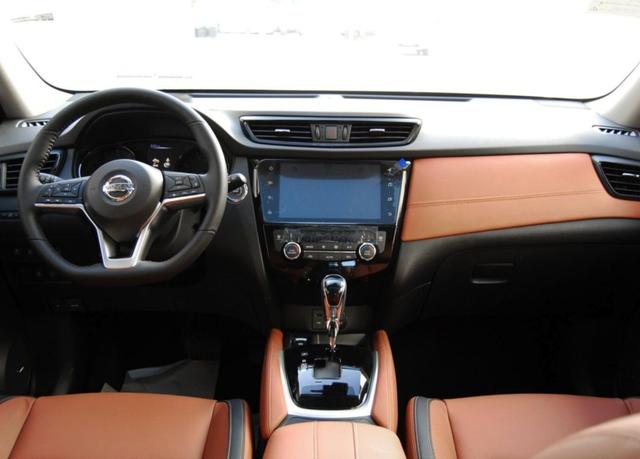 车的内饰是黑棕搭配,整体的色调算不上豪华,但是色系属于暖色调,感觉偏居家性质,而奇骏也很好的把居家理念融入到了车中。标准的T字形中控台,还花了一点小心思,中控台两边进行了弧线设计,与车门很好的衔接了起来,形成了环抱式设计。在视觉感受中,就显得车内横向空间很富裕。