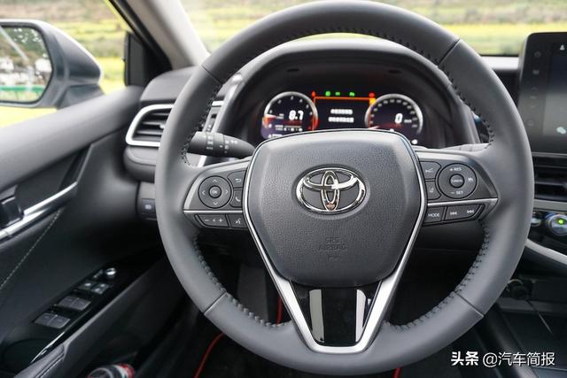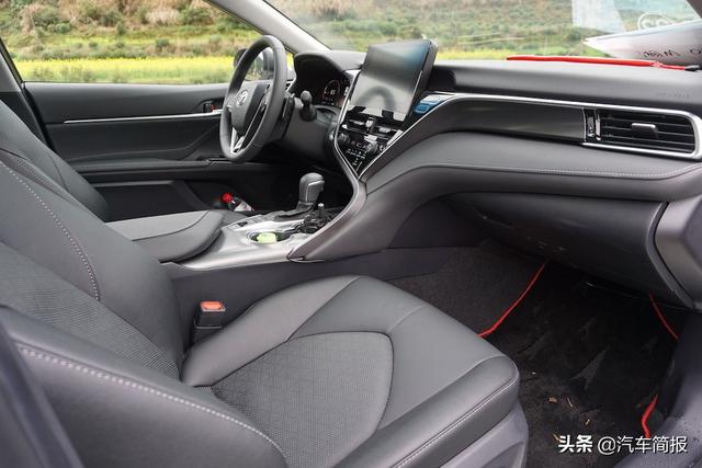 值得一提的是,在科技提升的背后是未曾落下的舒适自在。2021款凯美瑞在延续既有尺寸之下,通过对内饰材质和配色的迭代达到了豪华感提升的目的。笔者拿到的这台凯美瑞是全黑色内饰,并嵌入了金属色装饰,除了这款之外还有米色、红色、棕色可选,不过只能有机会再体验了。这套黑色内饰看起来其貌不扬,但大面积采用的类皮质带来的质感是丰富异常,另外每两个装饰面中间都加入了手工缝合花纹处理,在豪华感上,凯美瑞始终都能保持在线。