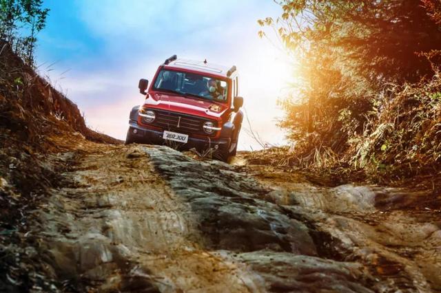 其实,仅看纸面数据,就应该对它的越野能力有个大致了解——227马力的最大功率和387牛·米的最大扭矩,双速分动箱、前中后三把机械差速锁,224mm离地间隙和700mm的涉水深度,接近角33°、离去角34°……