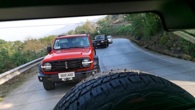 总之,坦克300有比较清晰的驾驶感,大多数人都能上手。只是在过减速带的时候,因为车身和悬架结构(后整体桥)的原因,其弹跳颠簸比较生硬,尤其是坐在后排时;但在市区的一些坑洼起伏路面,悬架和轮胎的过滤又很温柔,是那种高级车身上很沉闷的声音,传递到车内的震动也很轻微——要知道,我们试驾的这款车,还搭载了固铂ATT越野轮胎。