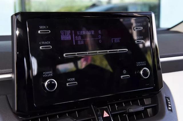 因为没有配备中控大屏,所以这款入门车型的“中控大屏”位置被更改为收音机控制区域,而且这款最低配卡罗拉也没有配备倒车影像、手机互联等功能。