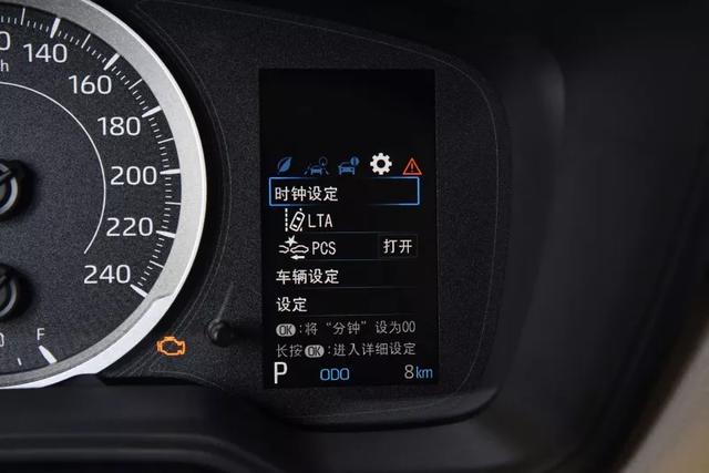 仪表盘采用常规机械指针仪表+彩色显示屏的组合,右侧的4.2英寸屏幕可以显示胎压、驾驶信息、车辆设置等信息。