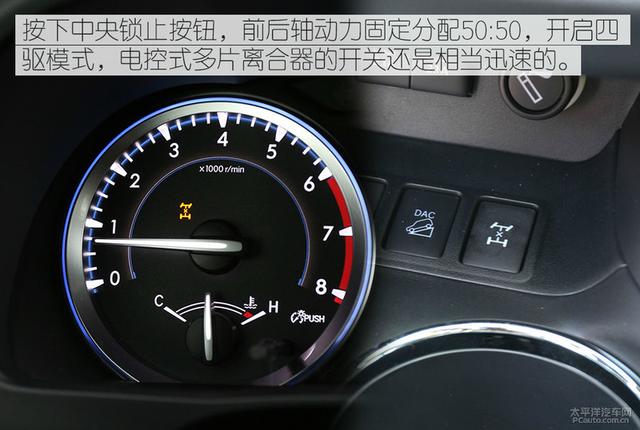 大多数城市中型SUV,或多或少都会配备一套四驱系统,作为城市当中聊胜于无的功能,实际意义并没有想象当中的大。汉兰达同样配有适时四驱系统,中央差速锁为电控式多片离合器,电磁控制的四驱系统快速方便,更容易体验到轻越野的快感。
