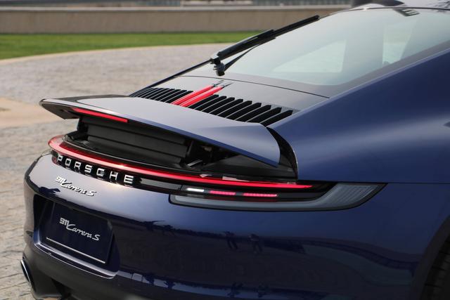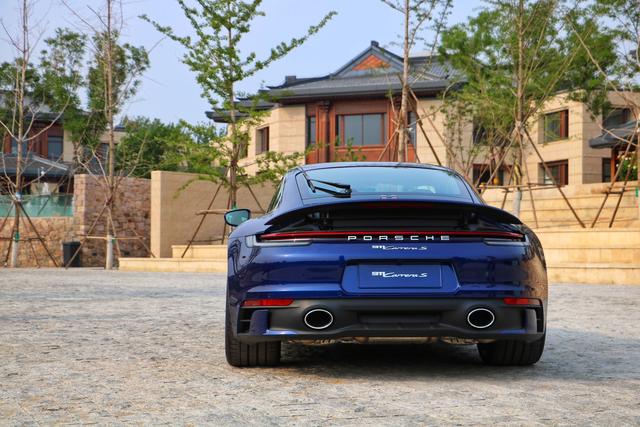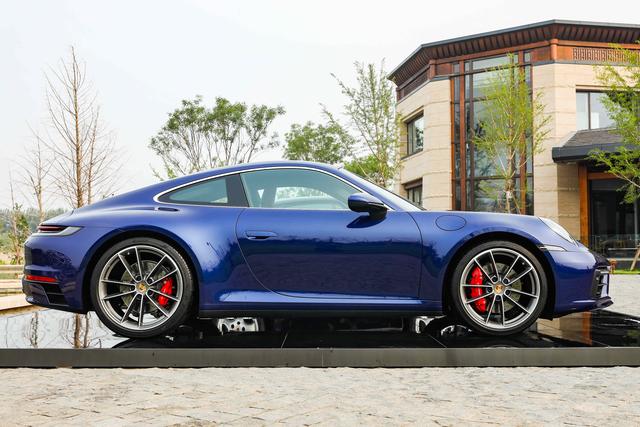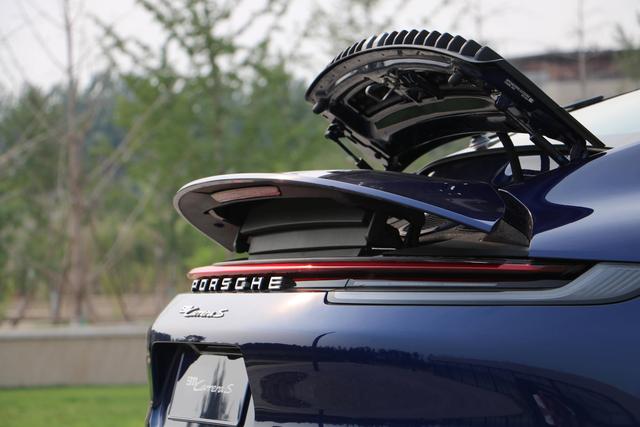 座舱和车身主体部分收窄,平直车门在精妙布置下凸显了宽大的前后翼子板。车尾大幅度地向下方内收并且末端位置较低,这也是初代911的设计特征。与此同时,前后轮分别配备20和21英寸的轮毂,位于轮毂上方加大宽度的翼子板呈现出明显的拱形。后轮驱动的车型与之前四轮驱动版的车身宽度一样,后桥加宽了44mm。这样,既强调了动力总成的布局位置,也使车辆更好地贴合地面。