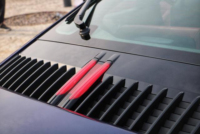 在车尾,最引人注目的特征是显著加宽,且可以无极调节的尾翼,以及LED无缝灯带。进气口的垂直饰条与后车窗的线条走向相呼应。布置在正中央的高位刹车灯也与进气格栅的线条相融。由于该刹车灯在尾翼伸出的情况下会被遮挡,因此在尾翼中还集成了第二个高位刹车灯。