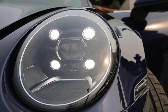 这两个设计元素都使车头显得更加修长,赋予其动感的风格。新开发的LED主大灯依旧是保时捷911典型风格的圆形大灯,但灯腔内部的LED光源以及功能则进一步表示了911在科技应用上的进步。