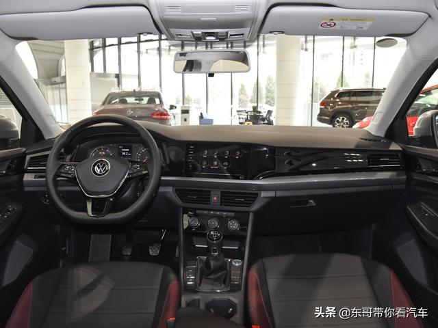 坐在车内,虽然这是一个次低配车型,但是大众全新的家族式内饰给人的感受还是很不错的,主要以黑色为主,内饰材质柔软,增强了视觉上的细腻度。配置上,考虑到这个价格来说还是不错的,有carplay/carlife手机互联还有上坡辅助和自动驻车功能,这对于手动挡来说是一个非常有用的配置,在半坡起步时会帮助驾驶员踩住刹车就不会溜车了。