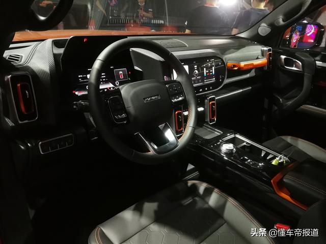 内饰方面,同样是比较硬朗的设计风格,中控台上采用了比较平直的线条,但中控屏区域的右侧以及出风口采用了圆角的造型,给人一种刚柔并济的感觉。全液晶仪表与大尺寸中控液晶显示屏,充分迎合了当下年轻消费者对于前卫的设计审美和智能化的配置需求。而功能配置方面,哈弗大狗将会提供手机蓝牙钥匙、无线充电、后排双USB接口、底盘透视技术和大尺寸的W-HUD抬头显示系统。