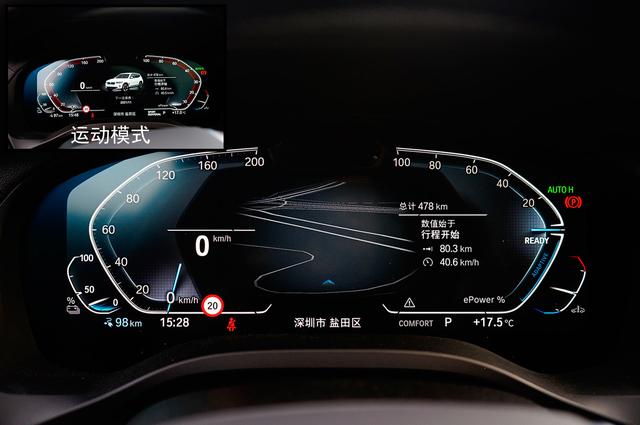 同样标配的还有10.25英寸中控屏,系统依旧是大家熟悉的iDrive 7.0系统,UI界面与菜单的布局都清晰好用,增加与充电相关的信息和设定功能。其余功能如在线导航、在线音乐、语音控制、蓝牙、百度CarLife和苹果CarPlay手机互联等功能都一致,语音可控制多媒体、导航、电话和空调,手势控制则变成选装配置。