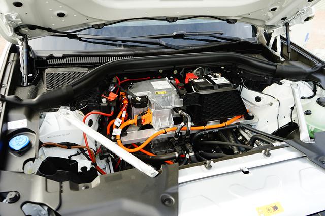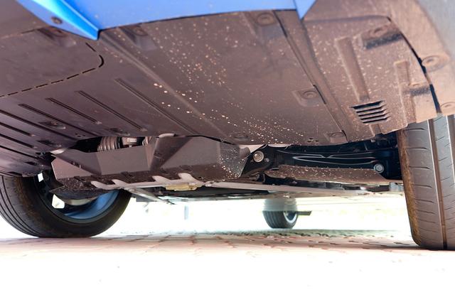 从这个角度可以看到后桥的三合一电驱总成,将电机、电控和减速器集成了一个壳体中,缩小了体积、减轻了重量。采用励磁同步电机最大功率为210kW(286Ps),最大扭矩也达到400Nm,使得它的0-100km/h加速时间仅需6.8秒。底盘方面,采用前双球节弹簧减振支柱+后多连杆独立式的悬挂组合。