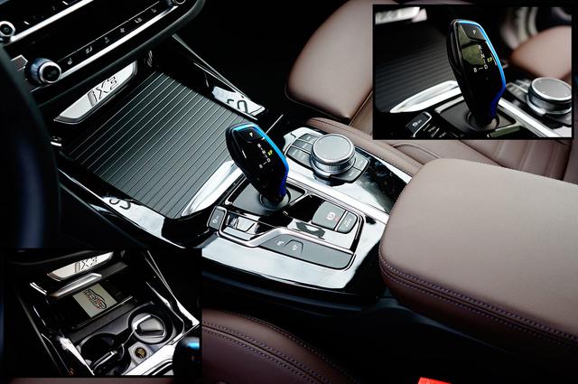 进入车厢,熟悉的感觉扑面而来,整个车厢布局与X3保持高度一致,包括12.3英寸全液晶仪表盘、10.25英寸中控屏、豪华套装方向盘、“鸡腿”电子挡杆等,仅在细节部分加入了蓝色元素点缀。整体而言,这套内饰风格并没有什么新意,但对于宝马的用户而言却非常有亲和力。