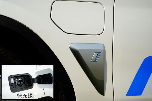 侧面轮廓与燃油版保持一致,依然采用短前悬长后悬、匀称的两厢比例,并采用立体腰线和精致的装饰。因为电动车在左前翼子板配置了慢充插口,考虑到此处是用户经常看到的地方,因此增加了银色三角饰板,带有醒目的“i”标识,强化i系列标签。再有就是底裙部分加入了蓝色饰条,搭配专属的半封闭式五星轮毂,变化也不算少,但只有在近处才能感受到它i系列的身份感。