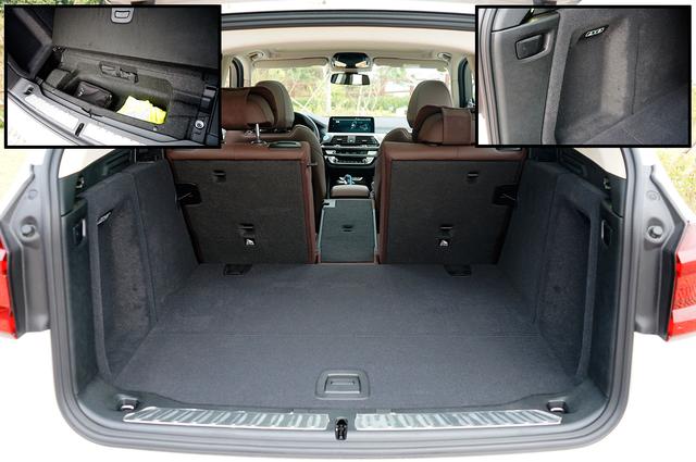 尾厢容积暂未公布,实际表现与燃油版也基本一样,两侧做得非常平整,空间方正,利用率很高。后排座椅支持4:2:4比例放倒,平整度也比较高,尾门侧壁还设置了一键放倒,比较人性化。与燃油版不同之处在于地板下方前半段不能打开,下方配置了后桥电机,后半段可以打开,容积较小,不过依然设置了后排遮挡帘的专用安置位,细节做得到位。
