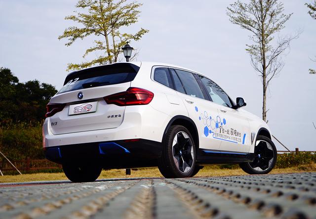 操控感受上,这台车与X3的驾驶感受也非常接近,方向盘的指向精准、转向手感细腻。悬挂的调校相比X3要略微硬一些,但比起很多电动SUV则显得更有韧性。个人非常喜欢这台车悬挂设定,很多电动SUV因为底盘较重不得不采用较硬的弹簧和避振,行驶时路感的传递较多而显得零碎,这台车的路感保留的恰到好处,在通过路面颠簸的时候又一定的弹性,悬挂的滤振比较干净,行驶的稳定性与舒适性都不错。山路中,悬挂的侧向支撑性充足,车身侧倾幅度控制得体,电动车低重心的特点让轮胎抓地力很充分,采用深踩油门的出弯方式,能感受到大马力后驱车那种转向过度的味道,比起四驱的X3显得更刺激好玩。
