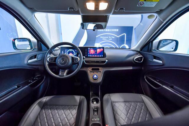 看向欧拉白猫车内,内饰的设计风格方面基本上与欧拉R1一致,方向盘设计、旋转换挡设计、储物格设计等基本上都如出一辙。不过值得提及的是,它搭载了一体式双联屏,尺寸达到23英寸,十足潮流大气。