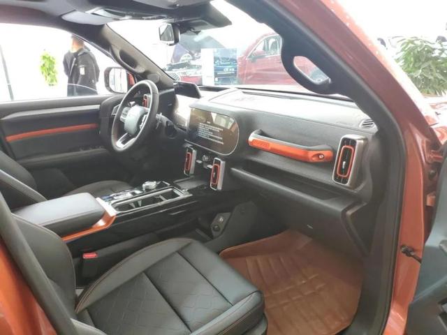 来到车内,有棱有角的中控以及副驾手套箱上部粗壮的扶手让见到大狗的人更加确认,这的确是一台硬派越野。与外观一样,大狗对内饰实用性的设计也非常细腻,前排中央扶手箱下部左右各一个的USB接口让驾乘人员在车内使用电子设备时彻底摆脱了电量不足的焦虑,位于后排的两个USB接口将乘客也照顾的非常到位,中控台位于副驾一侧的隐藏式挂钩也有非常高的实用性,当副驾提着塑料袋时可以轻松地释放双手。