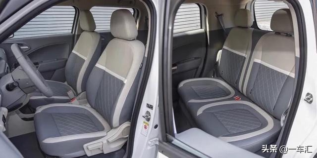 车内座椅表面为仿皮材质包裹,双色带有菱形纹路点缀的样式,与车厢内部风格呼应,前排主副驾驶位均为手动调节,且副驾驶额无法控制位置高低。后排同样采用的是双座设计,空间表现在同级别车型里属于比较突出的,后排仅提供了USB电源接口,没有中央扶手和空调出风口等实用配置。由于独特的造型设计,后备厢门开口较小,第二排座椅正常使用时后备厢容积为173L,后排座椅整体放倒后可扩展至867L。