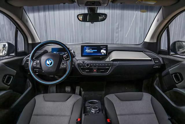 中控屏和仪表盘采用的悬浮式设计则要比现阶段车型的悬浮式设计彻底的多,时尚感不言而喻更多的则是节省了车内的空间,由此可见宝马i3的设计师是多么偏爱前排乘客。并且中控与门板上常见的塑料材质消失了,取而代之的是大量的洋麻纤维,不仅比传统材料轻了30%,制造过程也更加环保。