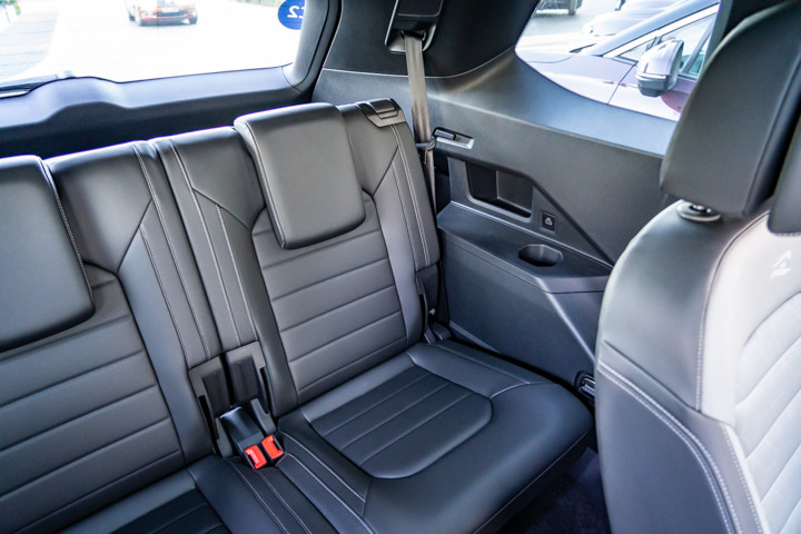 第三排座椅的乘坐空间符合预期,在第二排座椅调整到比较适中的位置后来到第三排,腿部依然能够有足够的活动余量,坐垫高度足够,不会给人坐“小板凳”的感觉。加上第三排配备了扶手、USB接口以及空调出风口,即使要长时间乘坐在第三排也不会有压抑的感觉。
