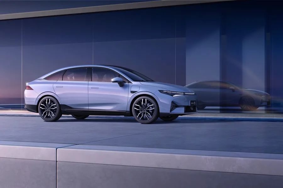 侧面,小鹏P5采用了溜背式车身,并运用了隐藏式门把手,使得它的风阻系数低至0.223Cd。车身尺寸方面,新车的长宽高分别为4808/1840/1520mm,轴距达到了2768mm,定位紧凑型轿车。尾部,小鹏P5则向小鹏P7靠拢,当下流行的贯穿式尾灯狭长凌厉,拉宽其横向视觉效果的同时,带着几分动感,并且“小鸭尾”的设计也让其更显时尚。