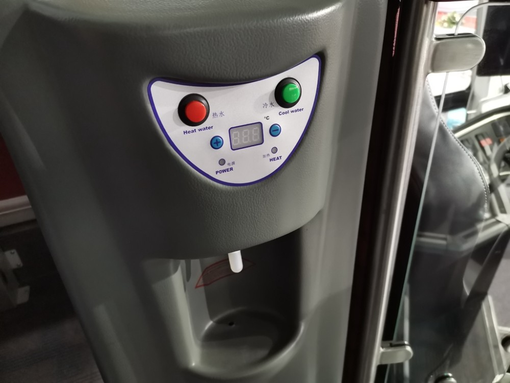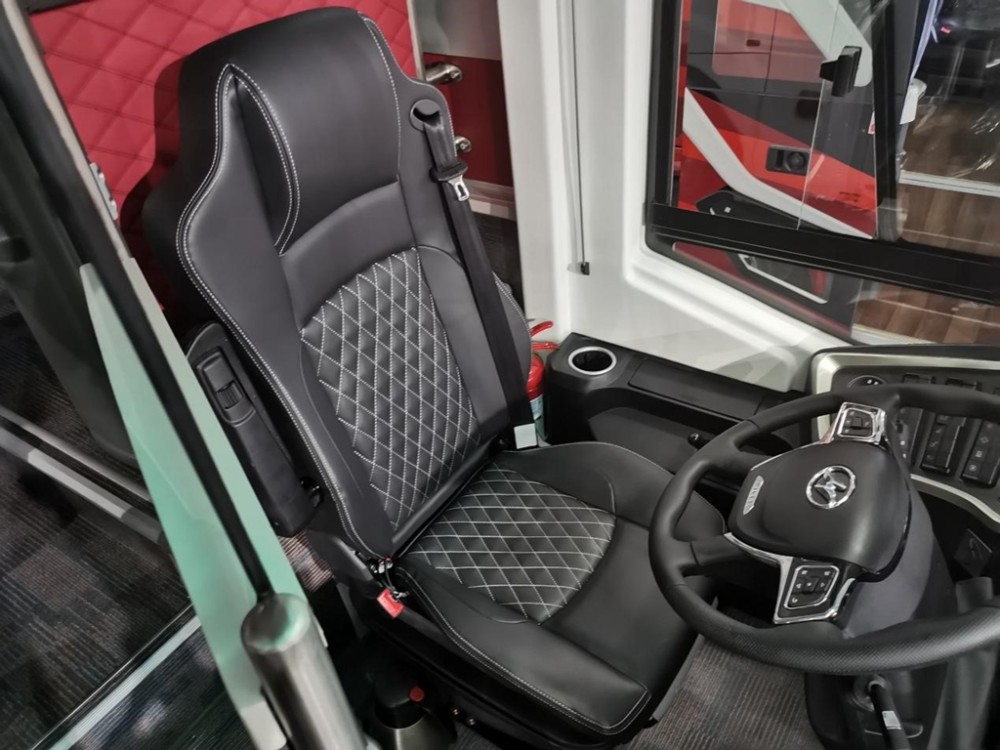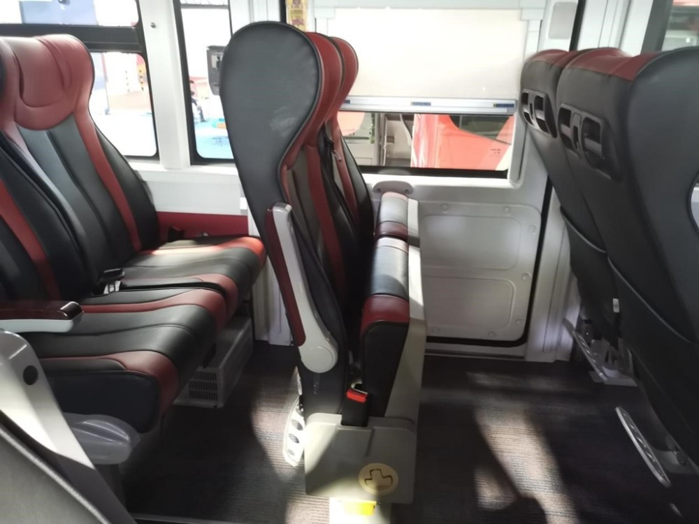 海格旅行家做工细腻,车上铺着一层地毯,走在上面舒适又防滑。黑色的皮质座椅上有两道红色的装饰,车体侧面和风道上也有红色的装饰,这是北欧的简约风格与中国传统审美的美妙融合,让海格旅行家透出了来自东方的浪漫之美。驾驶员座椅后还设有饮水机和冰箱。